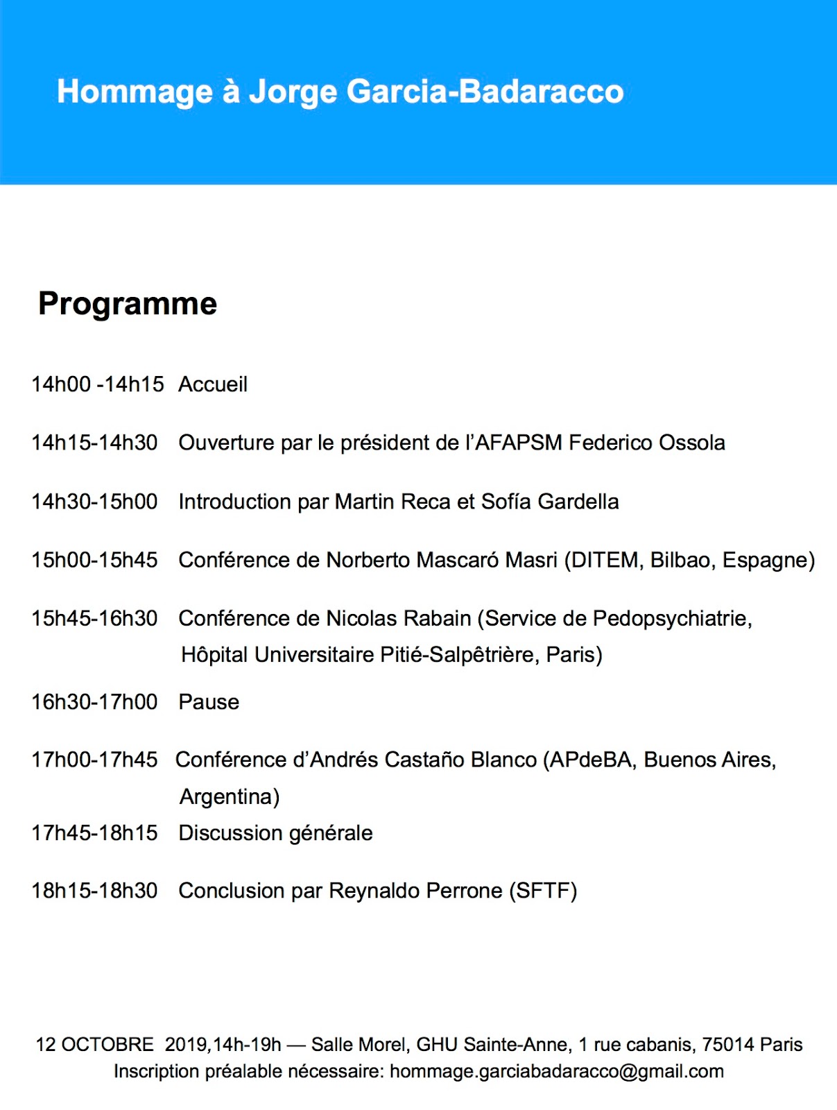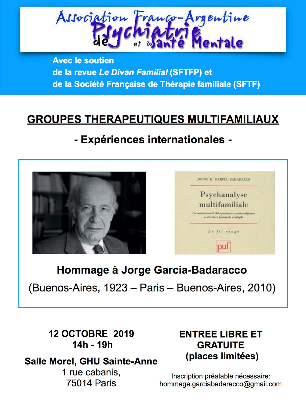 L’Association Franco Argentine de Psychiatrie et Santé Mentale a le plaisir de vous convier à la journée hommage à Jorge Garcia-Badaracco